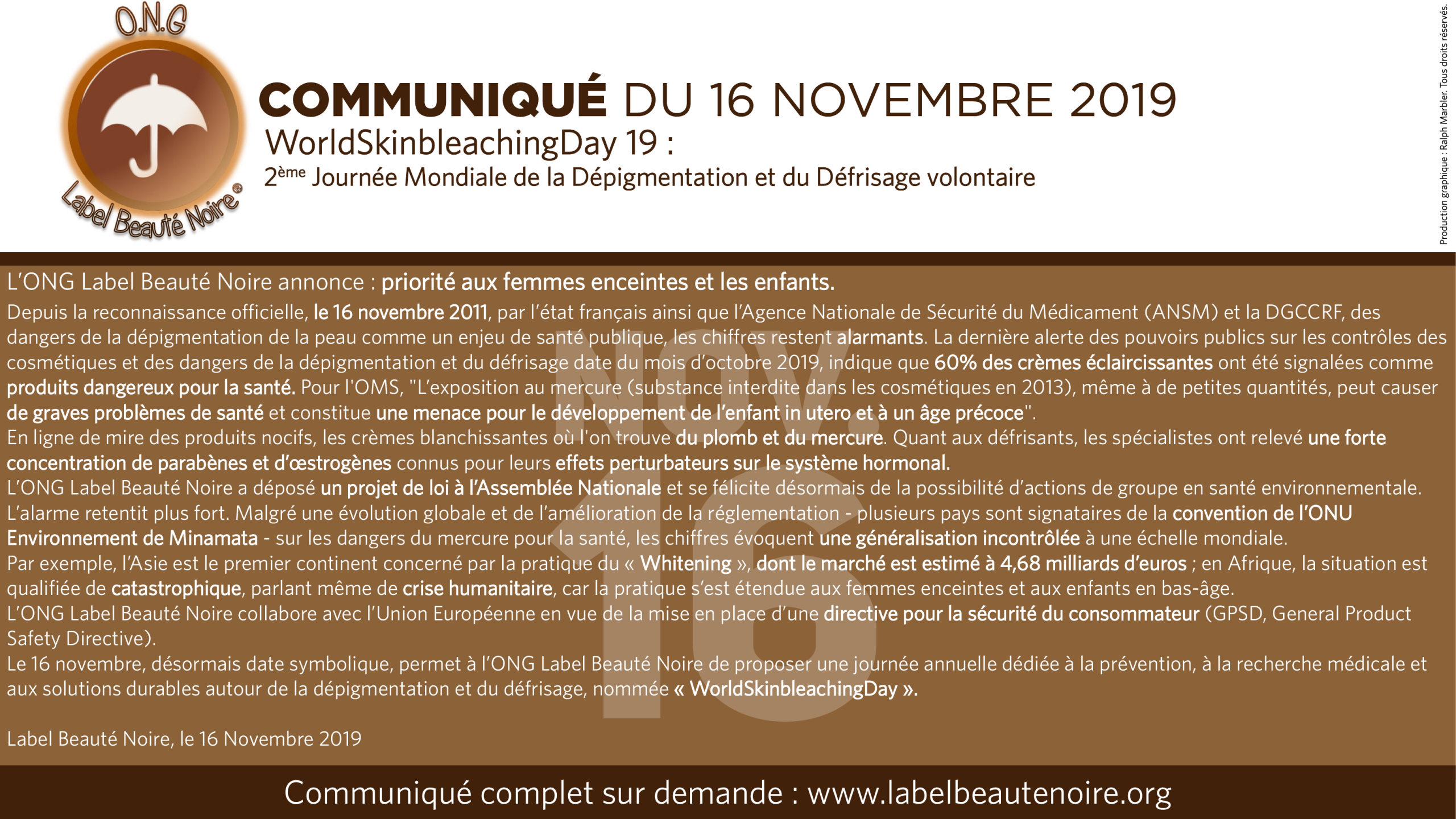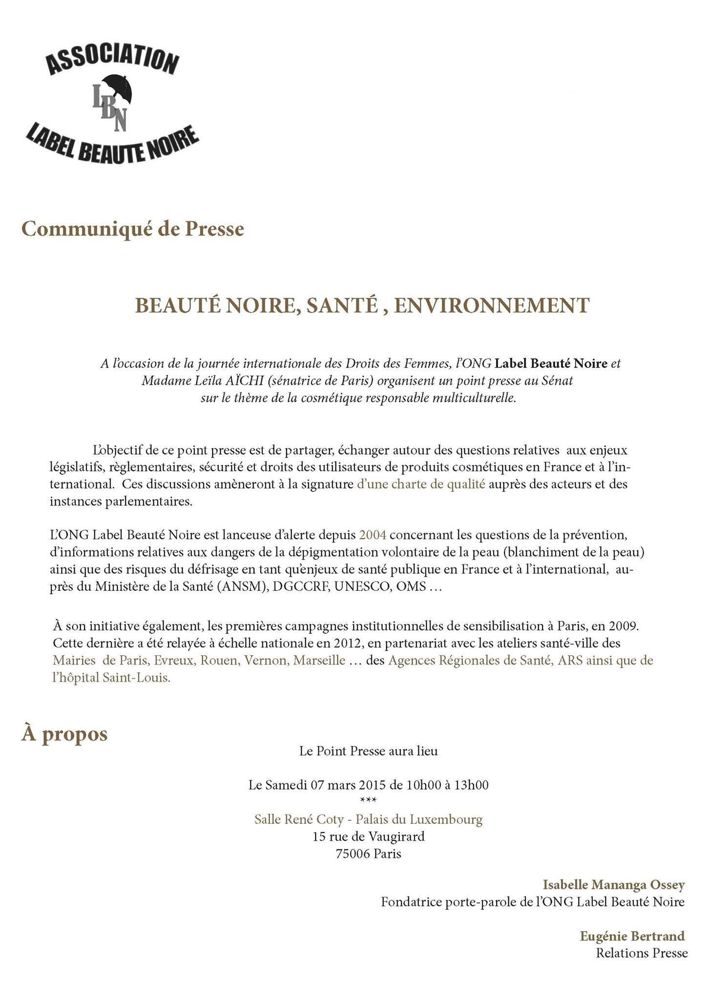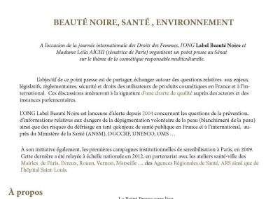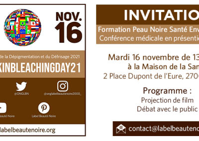 Depuis 2004, l’ONG Label Beauté Noire est précurseur sur les questions de la prévention, d’informations relatives aux dangers de la dépigmentation volontaire de la peau (blanchiment de la peau) ainsi que sur les risques du défrisage capillaire en tant qu’enjeux de santé publique en France et à l’international, auprès de la Mairie de Paris, du Ministère de la Santé (ANSM), DGCCRF, UNESCO, OMS, l’Agence Régionale de Santé …